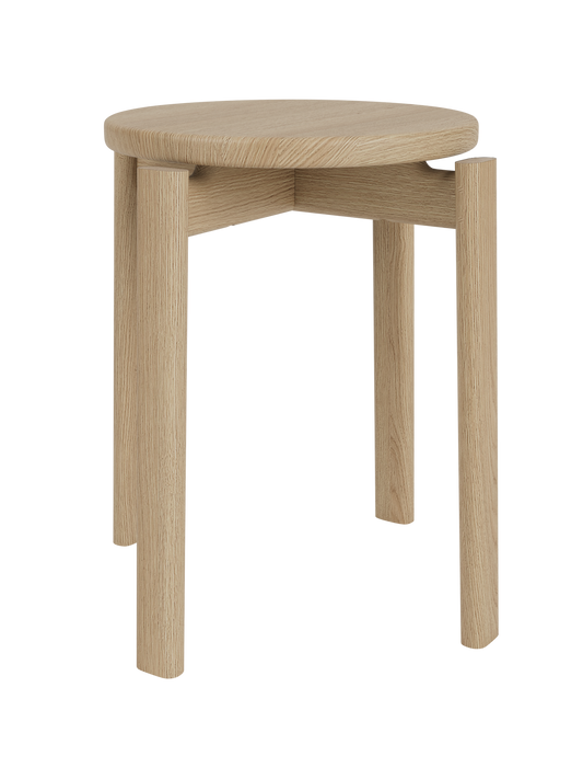 The Passage Lounge Table brings a feeling of soft serenity to spaces thanks to its calming shape and solid wood construction. Offered in three sizes, which allow you to pair multiples together in a nest table formation, it comes in two finishes: natural and dark lacquered oak. The Passage Stool from the same series works beyond its intended use as a chair to function as a flexible side table in spaces large and small. As a bedside table or living room side table, the versatile solid oak stool can be used anywhere.